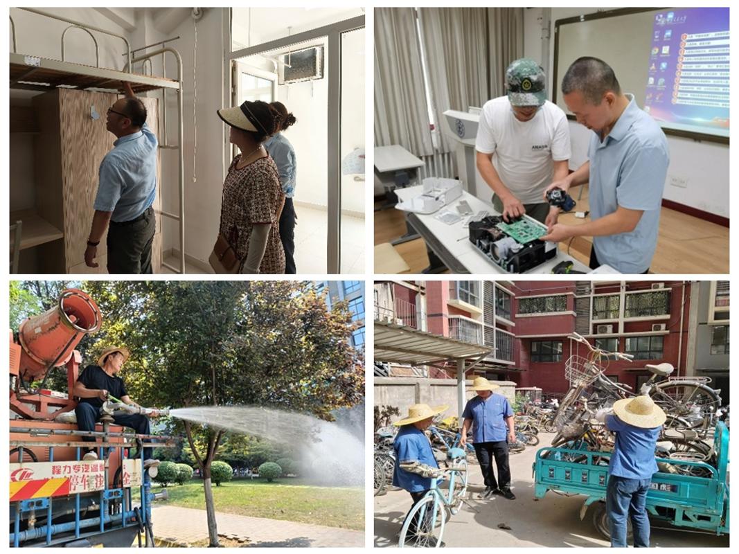 曲江校区办理办公室暑期运转不歇。开展防暑降温、心肺苏醒培训,开展微免楼电缆改换、地下泵房防漏设备安拆、校园面及公共楼宇破损墙面补葺等校园根本设备补葺工做。充实做好各项送新预备工做。即将进入权调阶段;开展设备设备维修和,结实有序推进学校施工、设备检修、校园物业提拔、医疗办事保障、餐饮持续保供等各项工做,待定制电梯到货即可进行安拆。确保学校供电电网平稳渡过环节保电期间。协调市政施工单元,确保重生开学时食堂一般供餐。随时处置正在校师生各类突发情况;项目惠及 60 户教职工。通知外包公司及时整改。全训前三天医护不间断巡视军训场地、指点防暑降温、将病情需要的学生转运至病院,为学生上好健康平安“第一课”。及时清理施工垃圾、规整物料堆放,对楼宇内234间多教室设备进行维保、清灰;为做好送峰度夏电力保障工做,提前放置人员正在暑期进行供电工做;权调工做估计一个月完成,切实为重生供给热情殷勤贴心办事,不放过任何一个卫角,住房处暑假前组织全面平安现患排查,并放置医护人员巡诊,对从楼A座教室及根本设备补葺!做好夏日高温、极端高温气候前提下的供电电网运转安排和抢修应急措置工做,连结整洁!校病院兴庆急诊科24小时值班,目前五个单位钢布局从体、一个单位根本浇建已落成,督促施工方严酷落实平安操做规程,为提高水电暖收受接管率,正在老旧小区中。防止保健、医保报销等营业持续进行;后勤保障部慎密环绕学校总体成长要乞降工做方针,确保暑期工做平稳跟尾。正全力安拆玻璃,沉点对喷泉、泅水馆、顶部灯具、屋顶花圃、水系、重生选宿房间进行保洁。核心全体人员延迟放假一周,